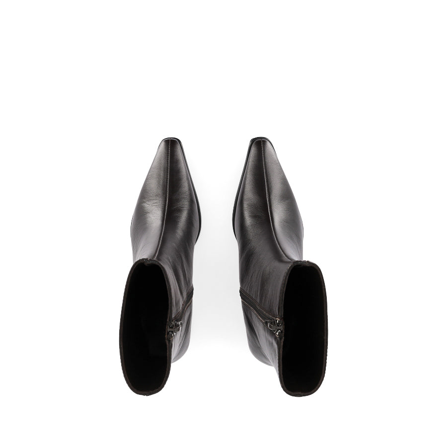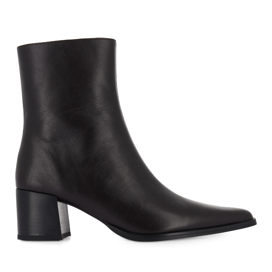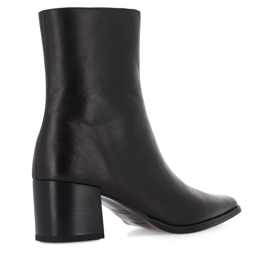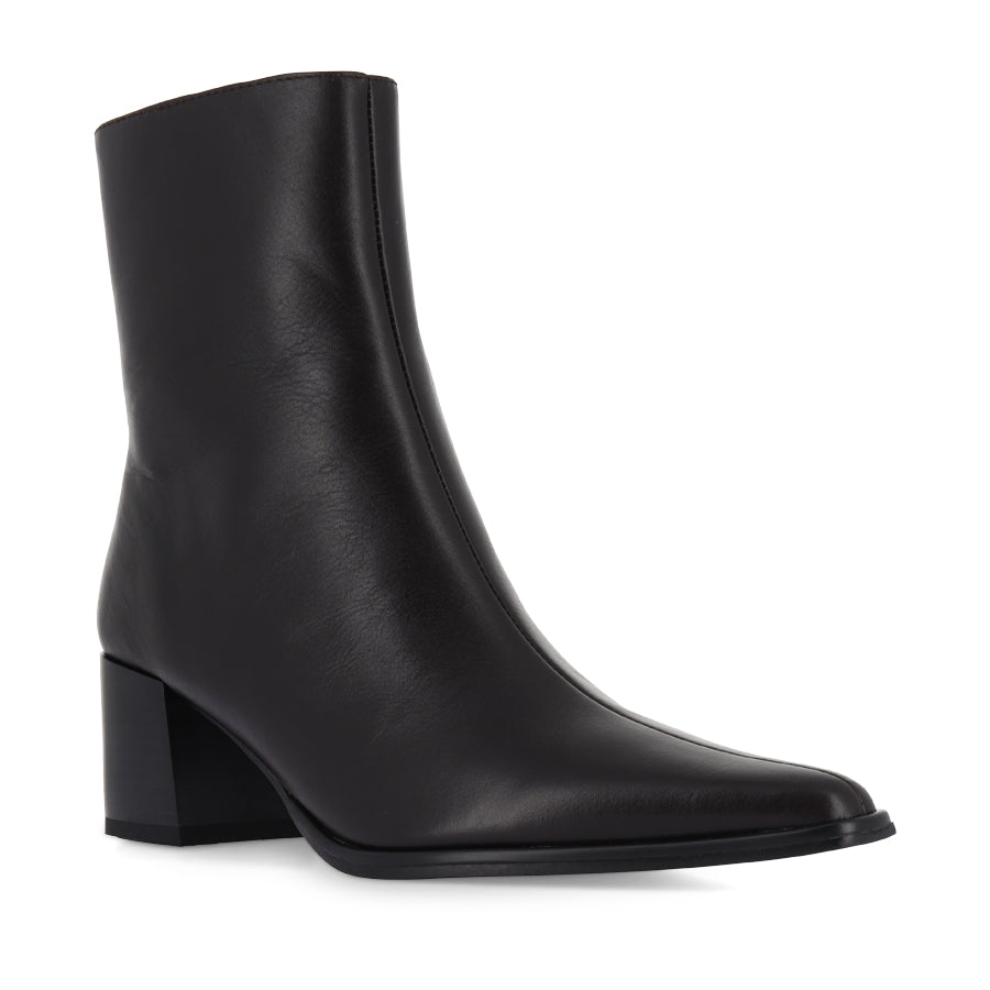 EVA by TONY BIANCO is a women's contemporary ankle boot with minimalist style. A smooth leather upper enhances the sleek silhouette, finished with a pointed toe and block heel. An inner zip allows for easy on and off, making EVA is a chic addition to any wardrobe.