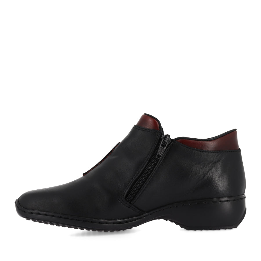 LISALA L3882 by RIEKER is a women's ankle boot designed for easy comfort. Crafted with a smooth leather upper, this style features twin zip closures for convenient on and off wear, stitchdown construction, and a lightweight, shock-absorbing sole. LISALA L3882 includes RIEKER's signature Antistress technology helps reduce foot strain, with lightweight, flexible materials, a spacious fit, and good absorption.