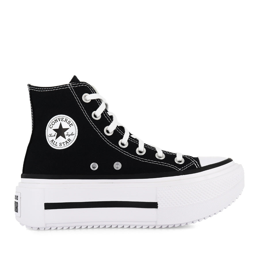 CT LIFT DOUBLE STACK HI by CONVERSE takes iconic style to new heights. Built on the classic ALL STAR HI CORE, this elevated silhouette features a durable canvas upper and a bold double stacked platform sole for added height. Lightweight EVA cushioning delivers comfort, while classic colourways and the signature All Star ankle patch complete the look. Designed to stand out, this statement sneaker brings extra attitude to an iconic profile.