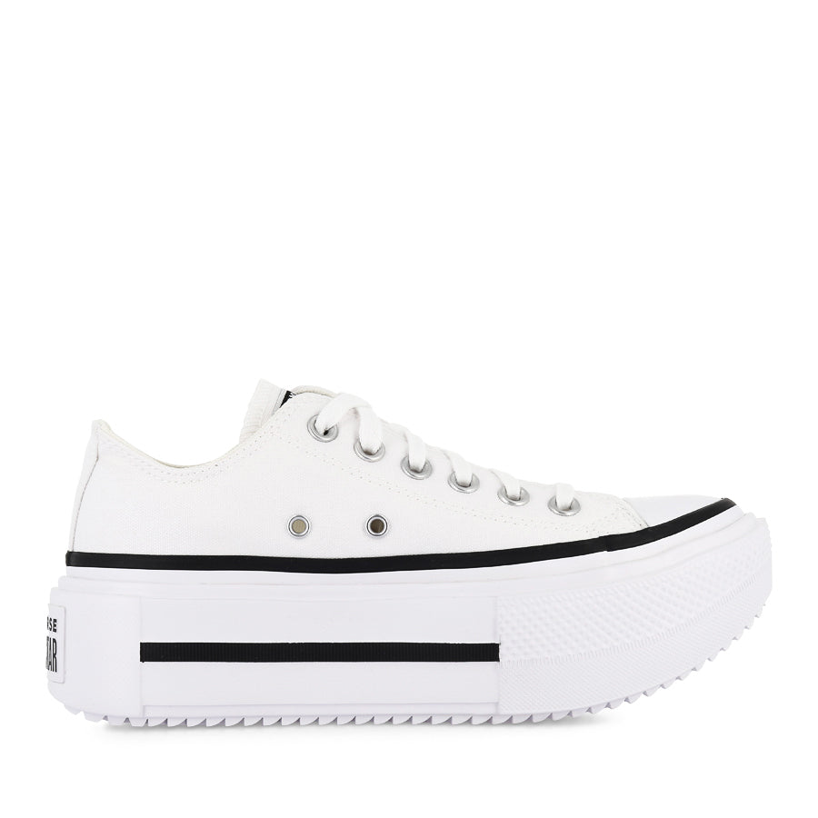 CT LIFT DOUBLE STACK LOW by CONVERSE takes iconic style to new heights. Built on the classic Chuck Taylor All Star low top, this elevated silhouette pairs a durable canvas upper with an ultra high, double stacked platform sole for standout lift. Lightweight EVA cushioning offers comfort, while a classic colourway and signature Converse branding complete the look. Designed to turn heads, this statement sneaker adds bold attitude to an iconic profile.