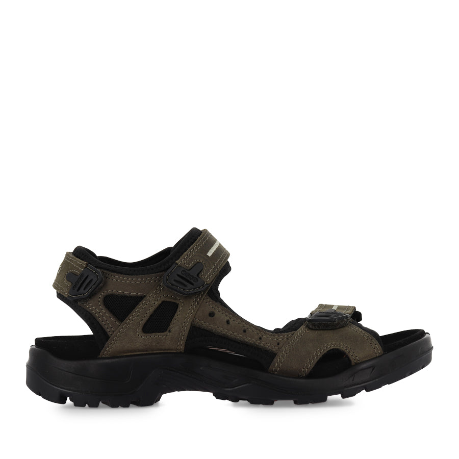 OFFROAD 69564 by ECCO is a men's performance sandal designed to conquer a variety of terrains with comfort. This sandal is lightweight, supportive, and designed to provide superior walking comfort both on and off the trail. Constructed with a soft nubuck leather upper featuring a single side bar, 3-point adjustability, and neoprene lining, the OFFROAD 69564 ensures a soft and comfortable fit. The moulded EVA footbed, topped with a soft microfiber cover, offers supreme cushioning and stability for all-day wear. Engineered with ECCO's innovative FLUIDFORM™ Direct Comfort Technology, the lightweight sole provides long-lasting cushioning and flexibility, while the RECEPTOR® technology enhances stability and dynamic support from ground impact to toe-off. Completed with a durable rubber outsole, OFFROAD 69564 delivers outstanding grip and traction on varied terrain, making it the perfect companion for your outdoor adventures.