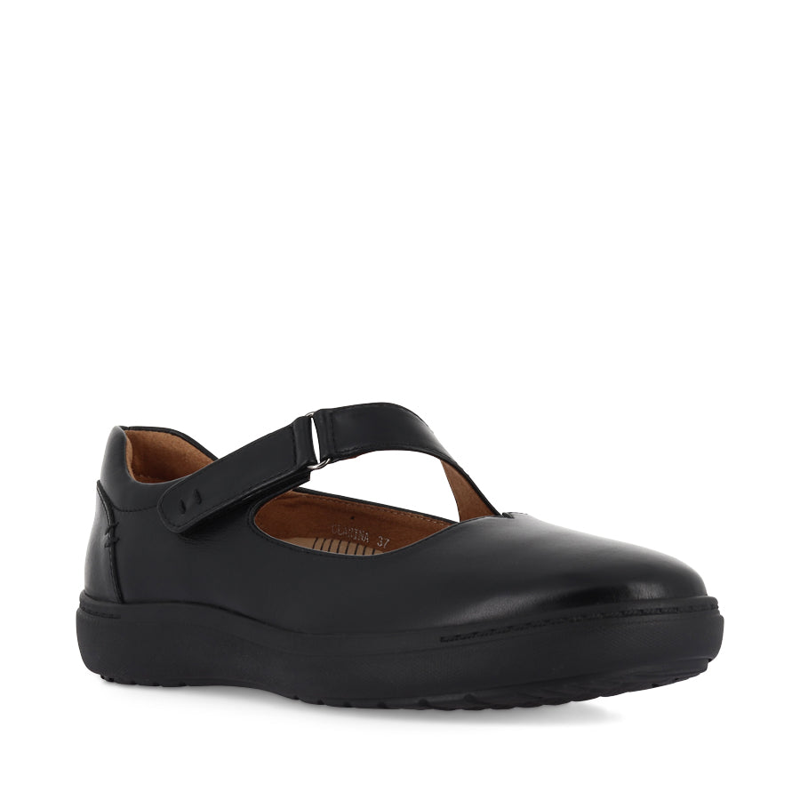 CLARINA by CBD is a women's Mary Jane style designed for the workplace and beyond. Crafted with soft leather uppers, a hook and loop strap, a rounded toe, and fully removable insoles with antibacterial lining, this shoe allows for personalised comfort for all-day wear. Part of CBD's Anti-Slip range, CLARINA combines style with functionality, offering secure footing while maintaining a smart, polished look.