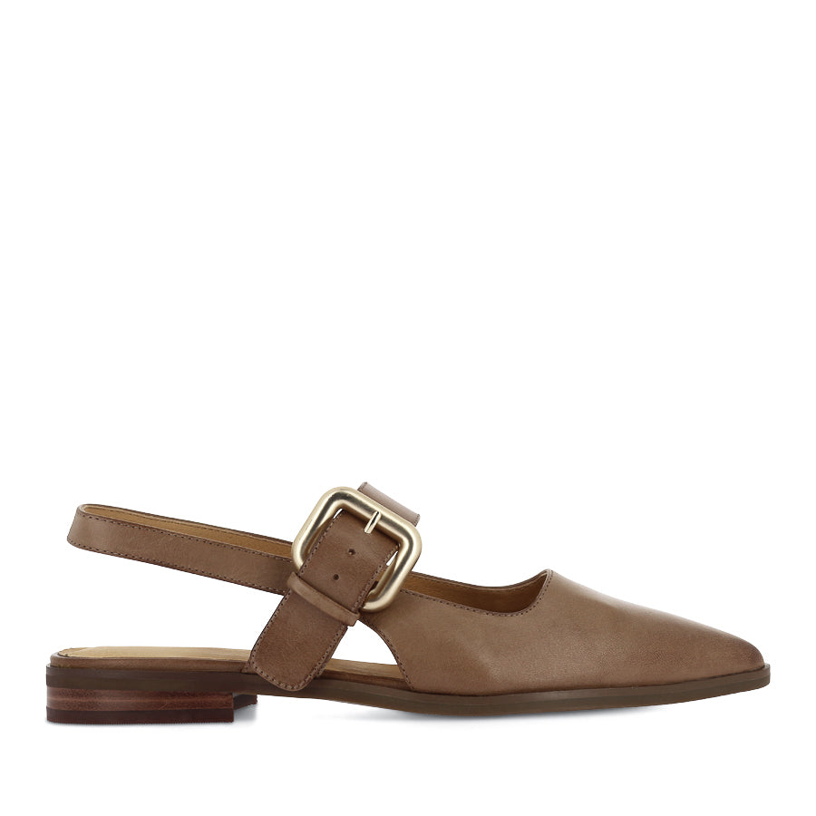 GOLDIE by EOS is a women's Mary Jane that blends timeless elegance with modern comfort. Crafted from premium leather, this style features an instep strap with a satin gold buckle and a slingback strap with an elastic gusset for a flexible, secure fit. A refined pointed toe and low block heel complete the design, all set on a flexible rubber outsole for easy wear.