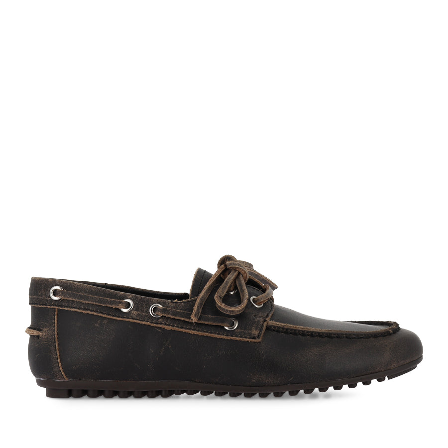 VAMBERS by DJANGO & JULIETTE is a women's boat shoe that blends classic appeal with contemporary styling. The rich black-cognac rub leather upper is paired with lace detailing and silver eyelets for a refined look. Adjustable laces enhance the slip-on design, while the high grip sole delivers reliable traction for everyday wear.