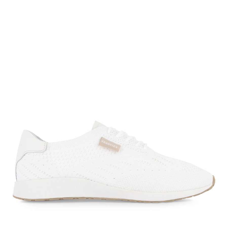 DIMITY II by FRANKIE4 is a casual women's sneaker that combines modern, sporty style with comfort-focused design. This updated version features a refreshed knit pattern, with a breathable upper crafted from recycled PET water bottles and leather accents on the tongue and heel. A triple-layer support system helps support everyday movement, making this lace-up style a reliable choice from morning through to evening.