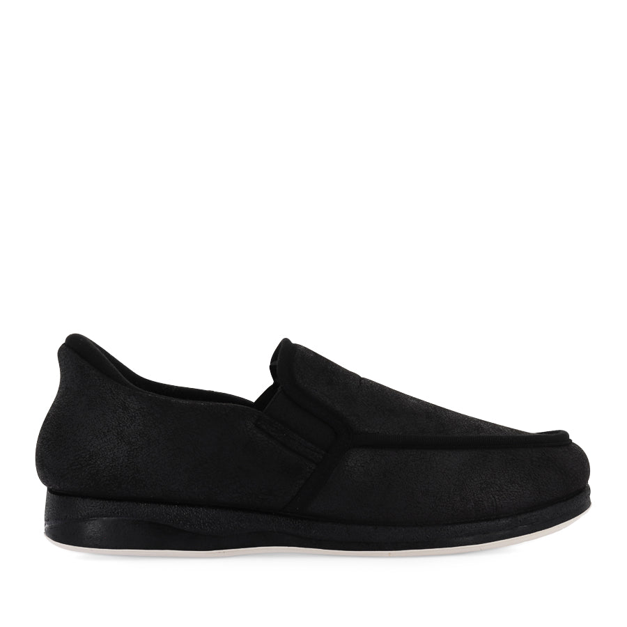 EDGAR by PANDA is a men’s slipper designed for easy wear and lasting support. The mottled PU twin gusset upper flexes naturally with the foot, while a supportive heel counter provides added stability for confident steps. A soft lining and cushioned memory foam sock deliver comfort and a cosy feel from heel to toe. Finished with a durable, flexible non marking outsole, this style offers slip on comfort and everyday ease. EDGAR is the perfect indoor essential for relaxed home wear.
