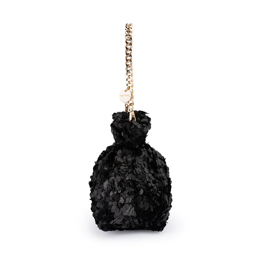 MATTIE SEQUIN POUCH by OLGA BERG a beautiful pouch style evening bag covered in matte sequins with a magnetic closure to keep your belongings secure. This adorable bag comes with a short chain handle and a long shoulder chain for multiple styling options.