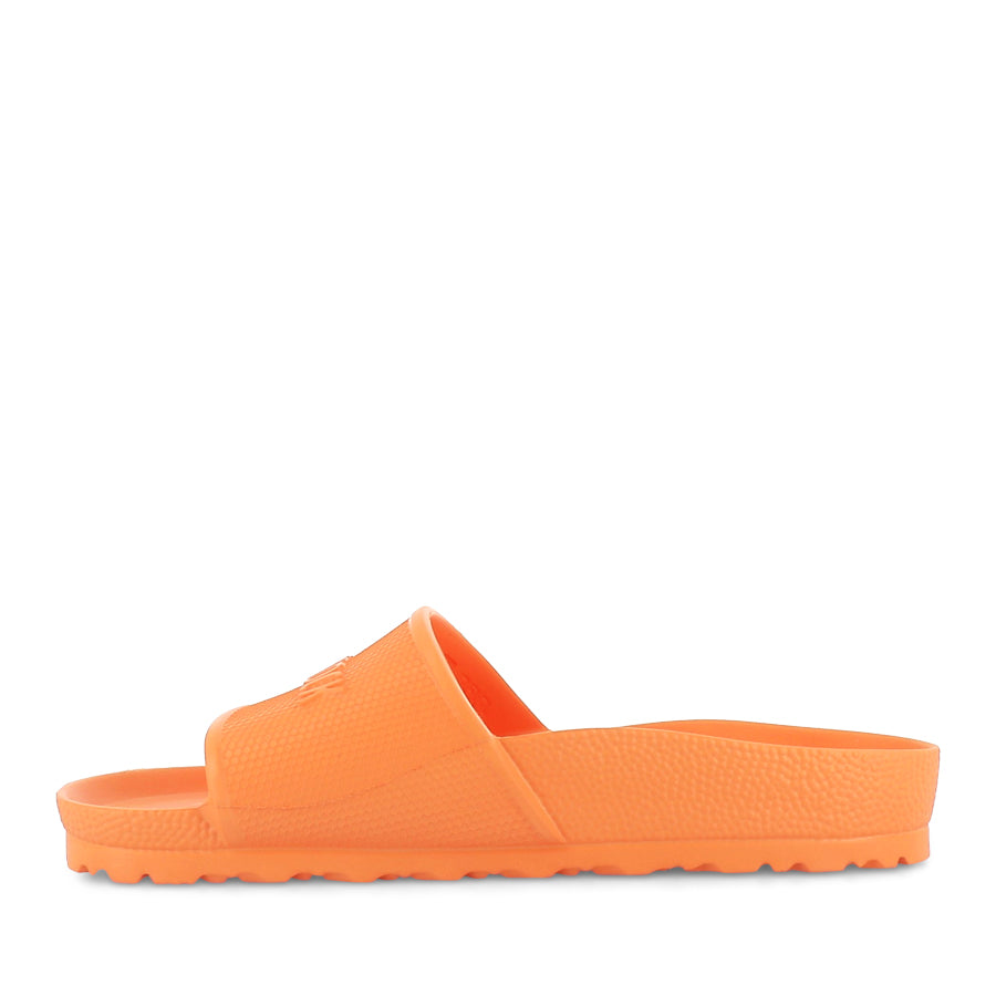BARBADOS EVA SEASONAL by BIRKENSTOCK is a sporty style slide, featuring a one piece design, a hexagon pattern and logo lettering across the strap, a traction pattern sole, and a water resistant footbed that will support your feet. Made from EVA, this style is highly flexible, shock absorbent and skin friendly. Enjoy both style and functionality with BARBADOS EVA.