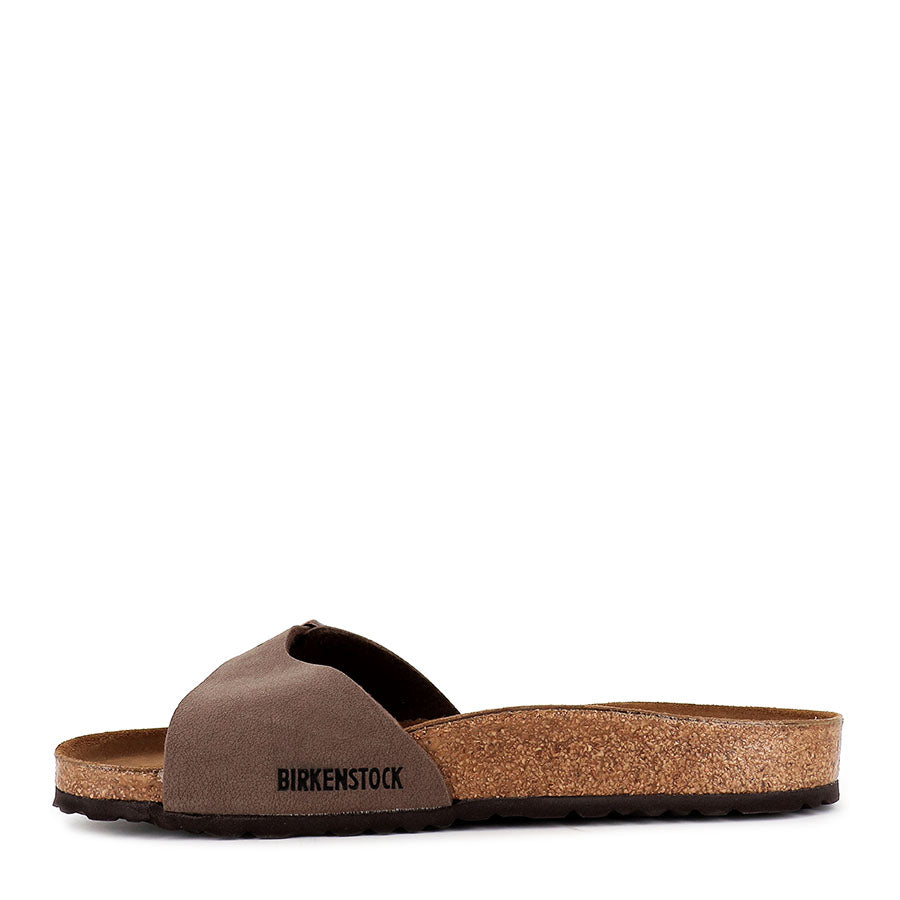 MADRID BIRKIBUC by BIRKENSTOCK is an iconic single strap slide that was the first BIRKENSTOCK model created, and has remained mostly unchanged since with its minimal design and exceptional comfort. MADRID features a natural cork sole, adjustable strap with buckle, an EVA sole and an anatomically moulded footbed designed to guide the foot to its natural position.