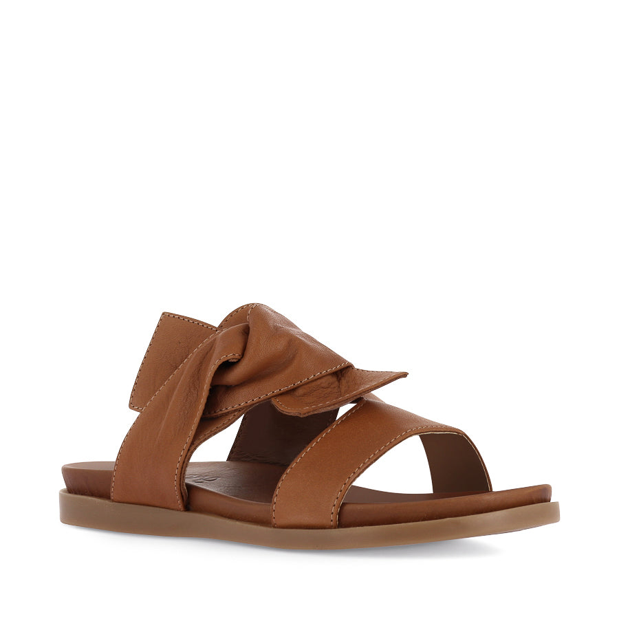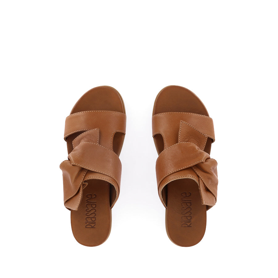 BECKAH by RILASSARE is a lightweight slide on sandal that combines effortless style with comfort. A super soft leather upper gently wraps the foot, complemented by a padded footbed for cushioned support. Knot detailing over the straps adds a refined and contemporary touch, while an open back conveniently allows for easy slip on wear. Versatile and chic, BECKAH elevates both casual and dressier looks.