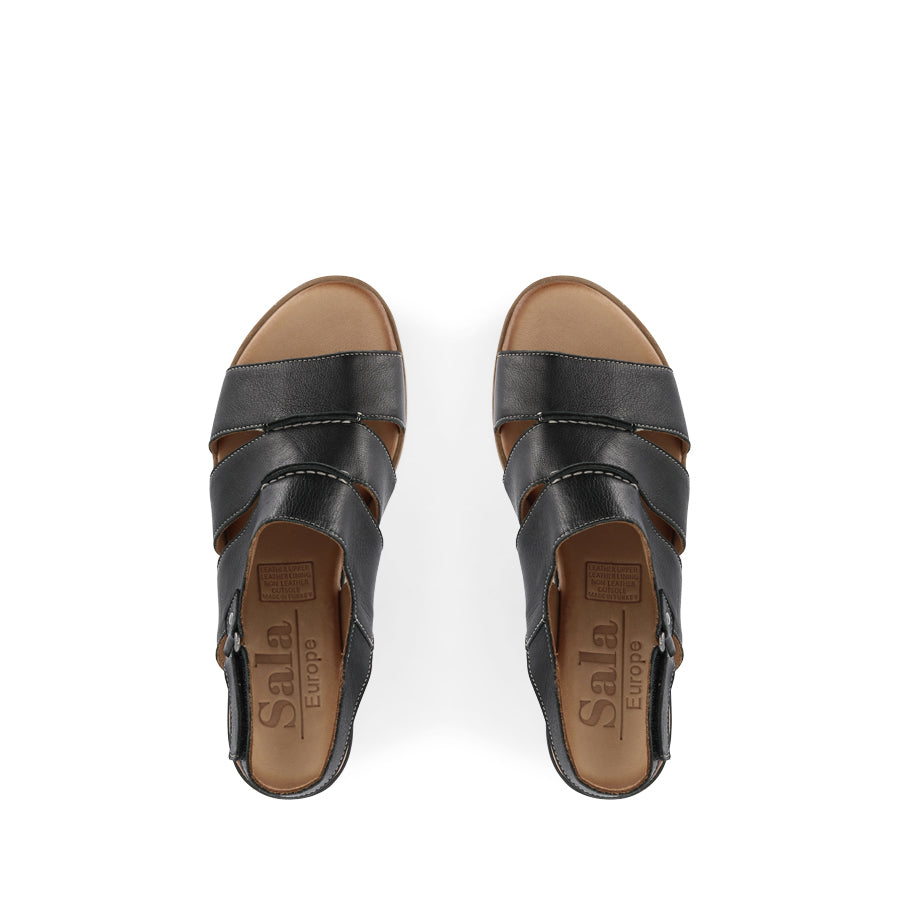 DION by SALA is a comfortable strappy sandal featuring three straps across the forefoot and an adjustable slingback strap with a hook and loop fastening for a secure fit. A slightly wedged sole adds a gentle lift, while an almond toe shape enhances both comfort and style. DION delivers versatile appeal, making this sandal a perfect go-to for summer.