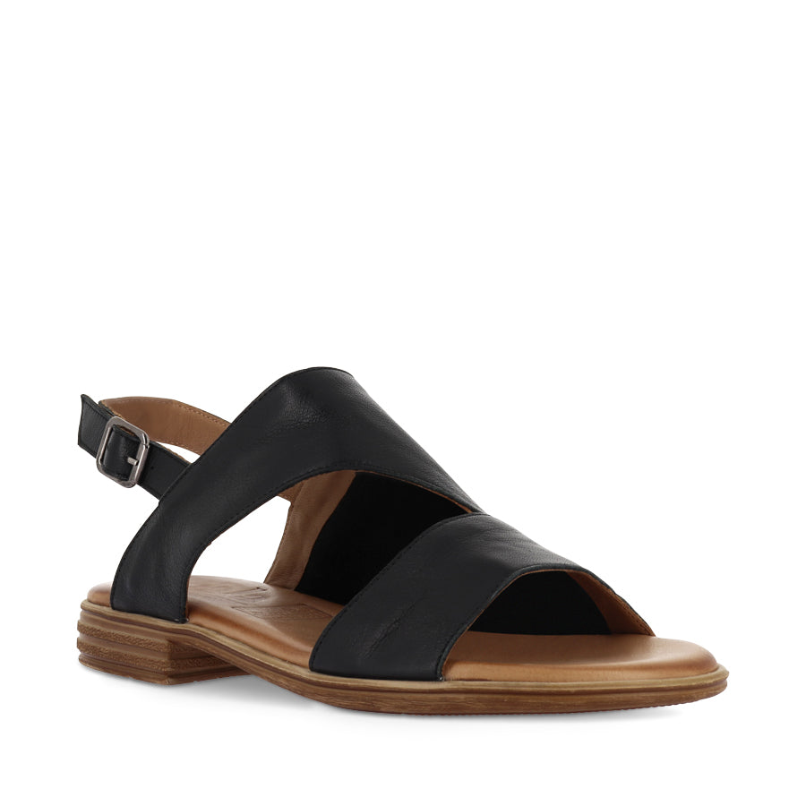 MIKEY by SALA is a women’s sandal crafted from soft, supple leather. The upper showcases a flattering cut out design with a slingback strap secured by a buckle. A low heel provides a subtle lift, while the natural colour sole adds gentle contrast for an understated, versatile finish.