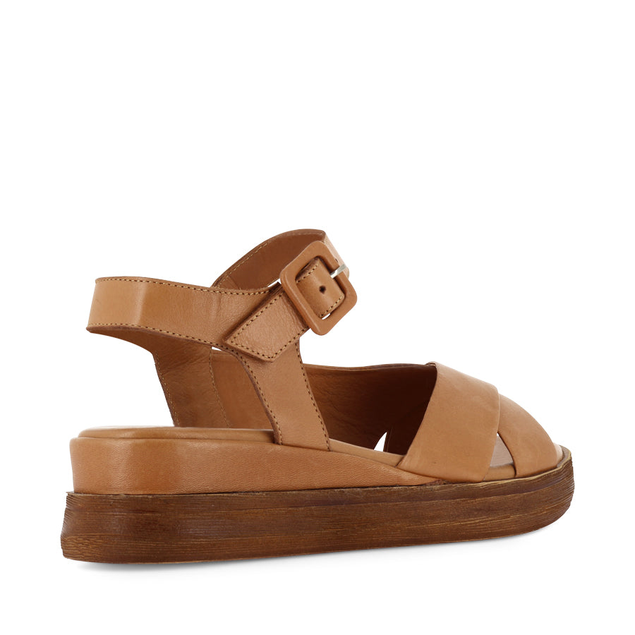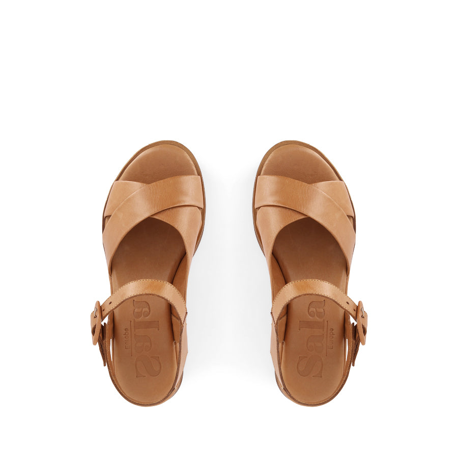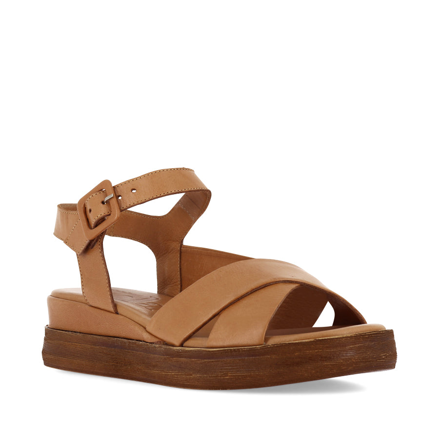 POTION by SALA a women's sandal crafted from soft leather in an elegant interwoven design over an open toe, flowing seamlessly into a secure ankle strap. An adjustable buckle ensures a comfortable fit, while a slightly wedged sole provides a gentle lift. Finished with an almond toe shape, POTION blends comfort and versatility, making this sandal an ideal summer go to.