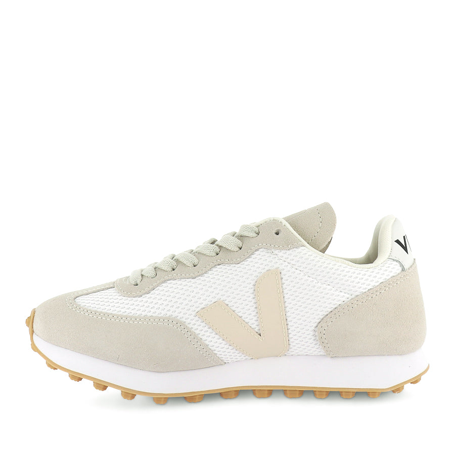 RIO BRANCO by VEJA is a women's sneaker made in Brazil, crafted from ecological materials such as organic cotton, and Amazonian rubber. RIO BRANCO features a padded heel, a durable, grippy outsole, the iconic VEJA logo on the side and back counter and an Alveomesh upper. Alveomesh is a technical fabric made from recycled polyester that is lightweight, breathable and flexible.