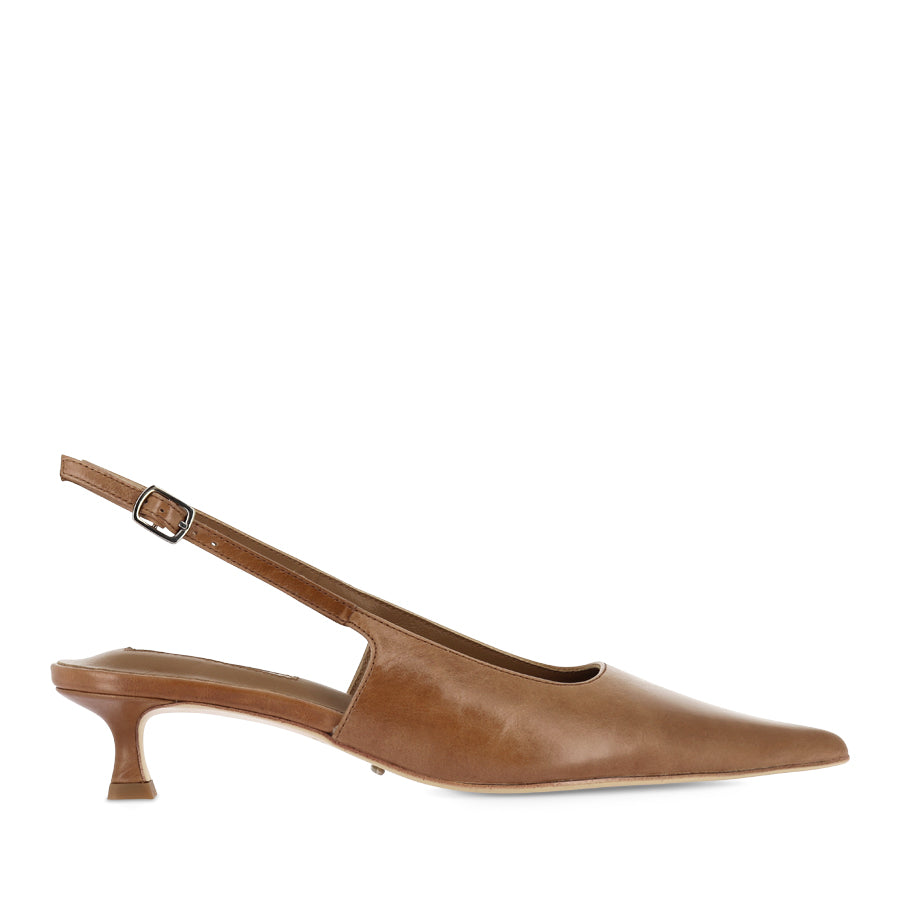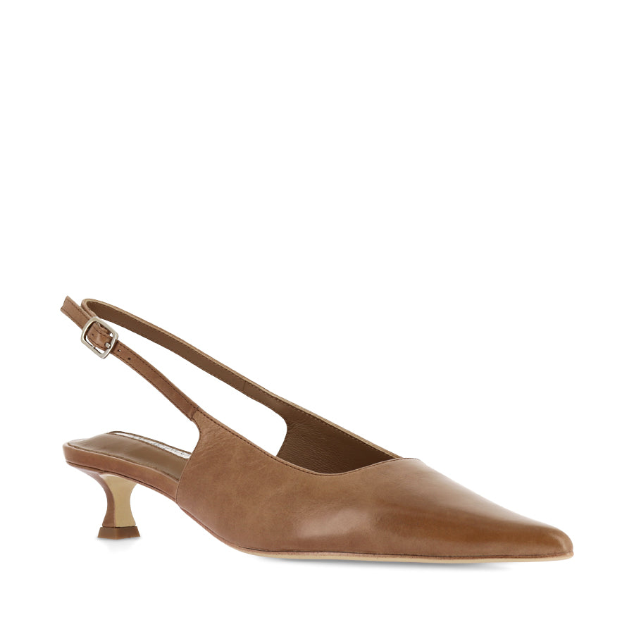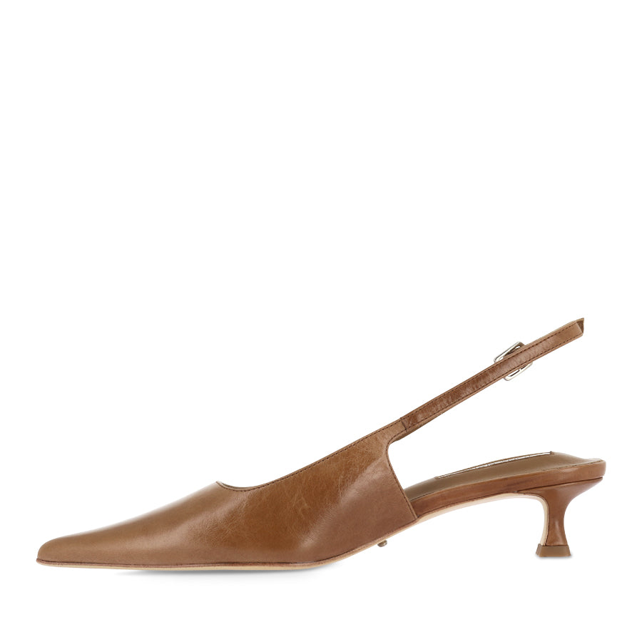 CRUSH by TONY BIANCO is a sophisticated slingback heel designed for effortless everyday styling. This versatile heel features a sleek pointed toe, a leather upper, and a slingback strap with an adjustable buckle. Set on a kitten heel, CRUSH strikes the perfect balance between elegance and practicality.
