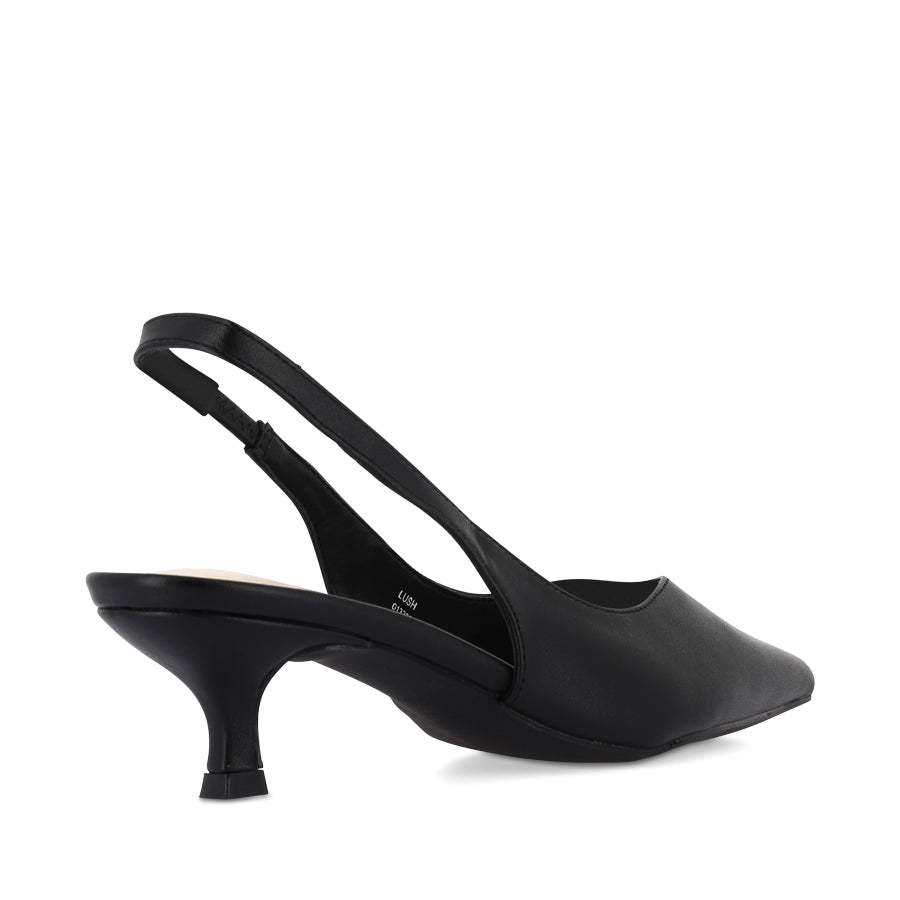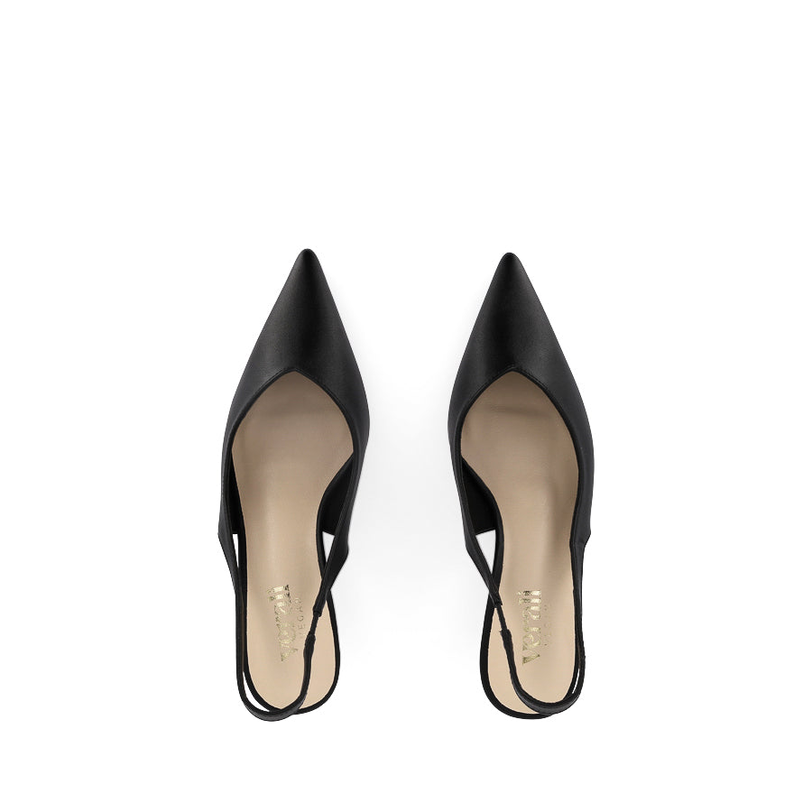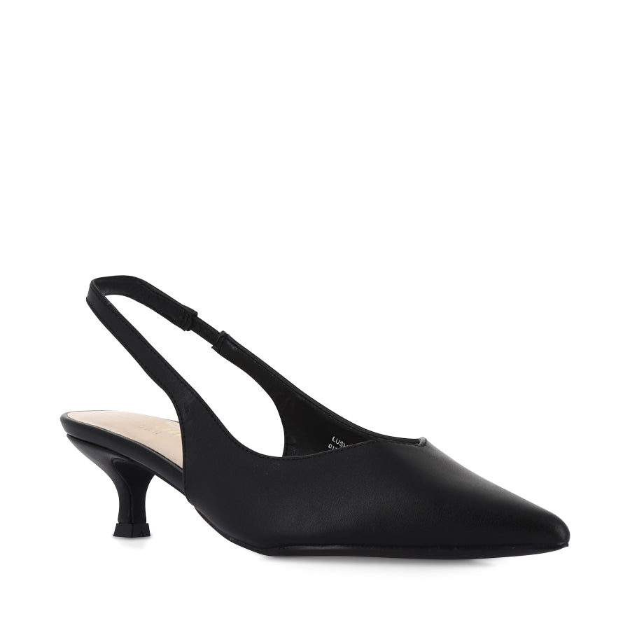 LUSH by VERALI SHOES is a minimalist slingback heel featuring a sleek pointed toe, a wearable kitten heel, and a slingback strap with an elastic gusset for a secure fit. This elegant staple offers timeless style, effortlessly transitioning from day to night.