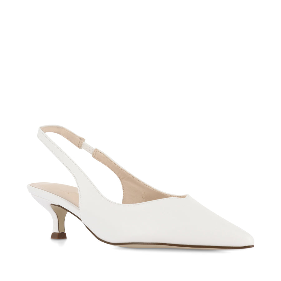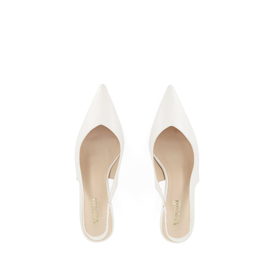LUSH by VERALI SHOES is a minimalist slingback heel featuring a sleek pointed toe, a wearable kitten heel, and a slingback strap with an elastic gusset for a secure fit. This elegant staple offers timeless style, effortlessly transitioning from day to night.