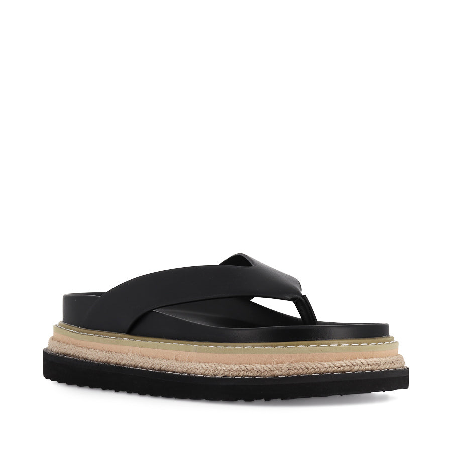 THEO by VERALI SHOES is a women's modern thong style with padded straps and a layered platform sole with espadrille-inspired rope detailing for added texture and style. Perfect for warm-weather wear, this thong delivers a laid-back yet elevated vibe.