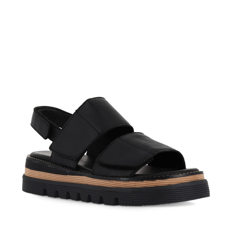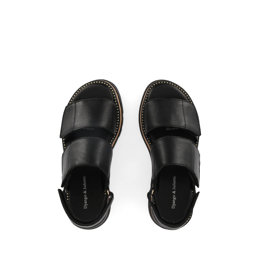 SONER by DJANGO & JULIETTE a women's platform sandal, perfect for warm weather. Dual adjustable leather straps across the forefoot combine with a slingback ankle strap, each finished with hook and loop fastenings to provide a secure and personalised fit. The layered, cleated platform sole stands out with a studded trim, adding a bold, modern edge. A perfect blend of comfort and style for warm-weather dressing.