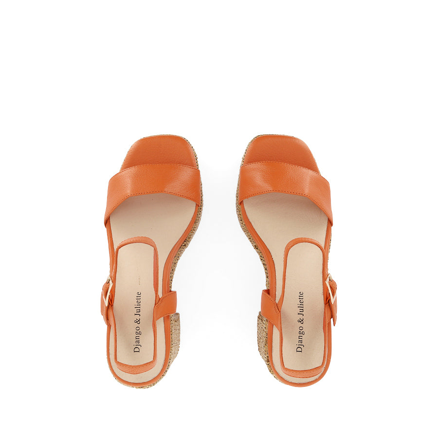 KELLOW by DJANGO & JULIETTE a women's platform heel with raffia detailing, perfect for warm weather styling. A leather strap crosses the toes, complemented by an ankle strap with a buckle fastening for a secure fit. The platform and block heel are wrapped in raffia, adding texture and a natural finish to this standout summer design.