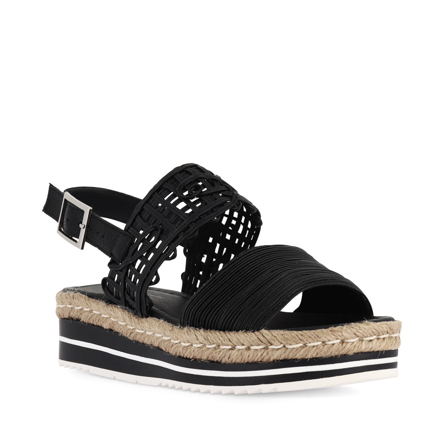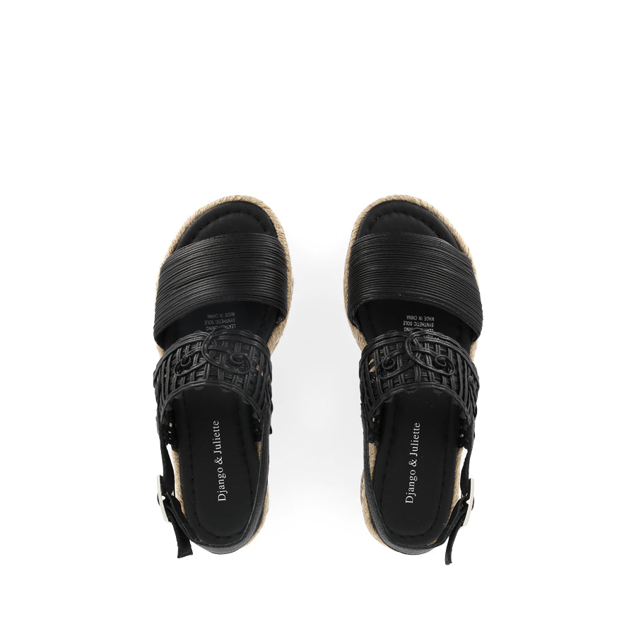 ADARA by DJANGO & JULIETTE a women's platform sandal that captures effortless summer style. A slingback strap with an adjustable buckle ensures a secure fit, while dual wide straps across the forefoot showcase intricate woven detailing for added texture, comfort, and coverage. An open round toe and heel counter create a light, breathable feel, complemented by a layered platform sole trimmed with jute rope for a natural finish. ADARA makes the perfect addition to warm weather dressing.