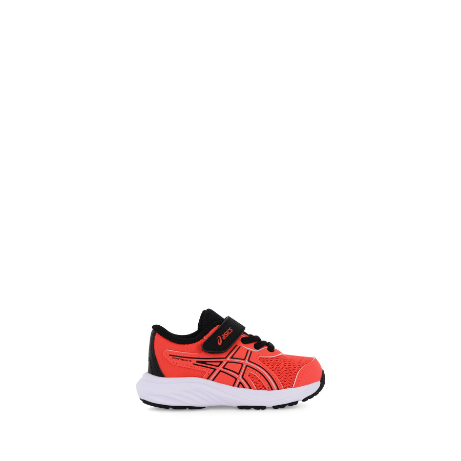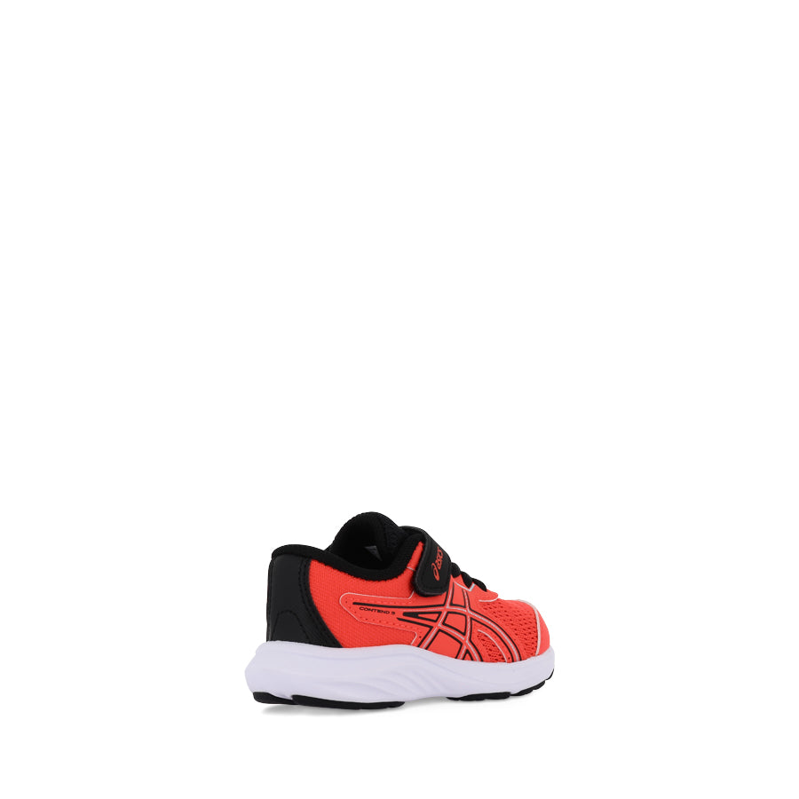 CONTEND 9 TS by ASICS is a toddler's sneaker designed to provide comfort and durability for active little feet. This sneaker features a hook and loop fastener, complemented by elastic laces for easy on and off wear. The toe reinforcement, toe rubber stitching, and solid rubber outsole ensure enhanced durability, making CONTEND 9 TS a reliable choice for toddlers.