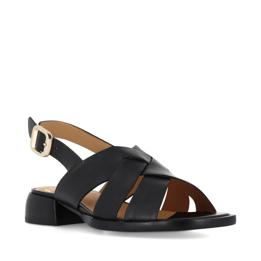 IKARI by EOS is a women's sandal that combines contemporary style with everyday versatility. The interwoven leather upper creates a sophisticated crossover look, while the slingback strap with buckle ensures a secure fit. Finished with a low block heel and an open square toe, IKARI is the perfect choice for the modern woman.