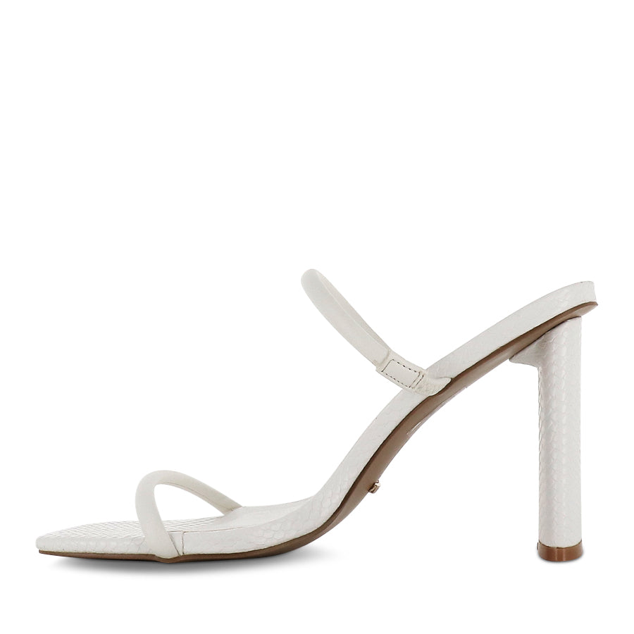 JOHANA by BILLINI are a slip on style heel, featuring two padded crossover straps, black scale material throughout and a square open toe.