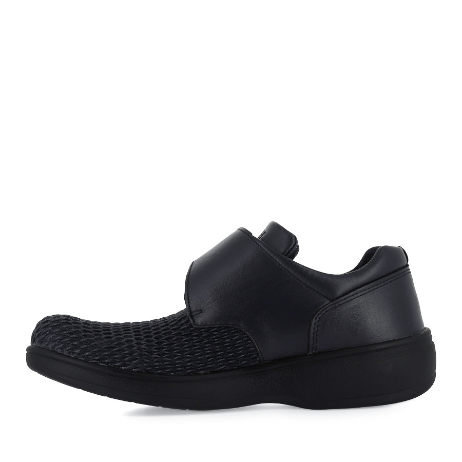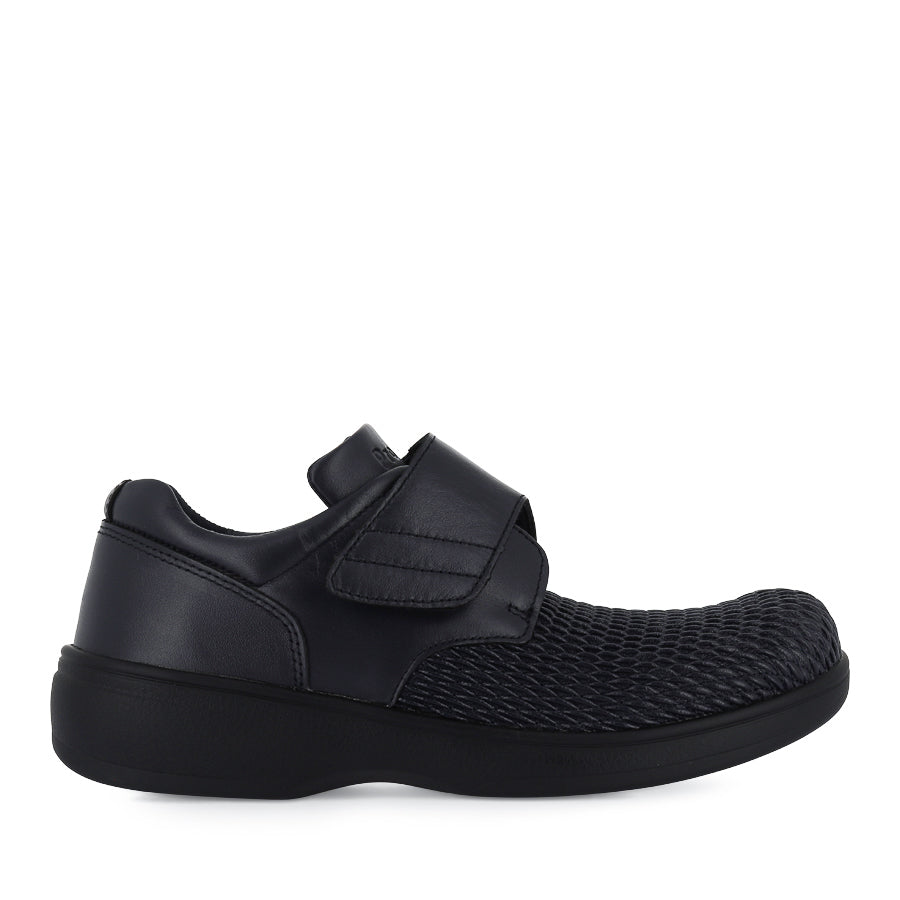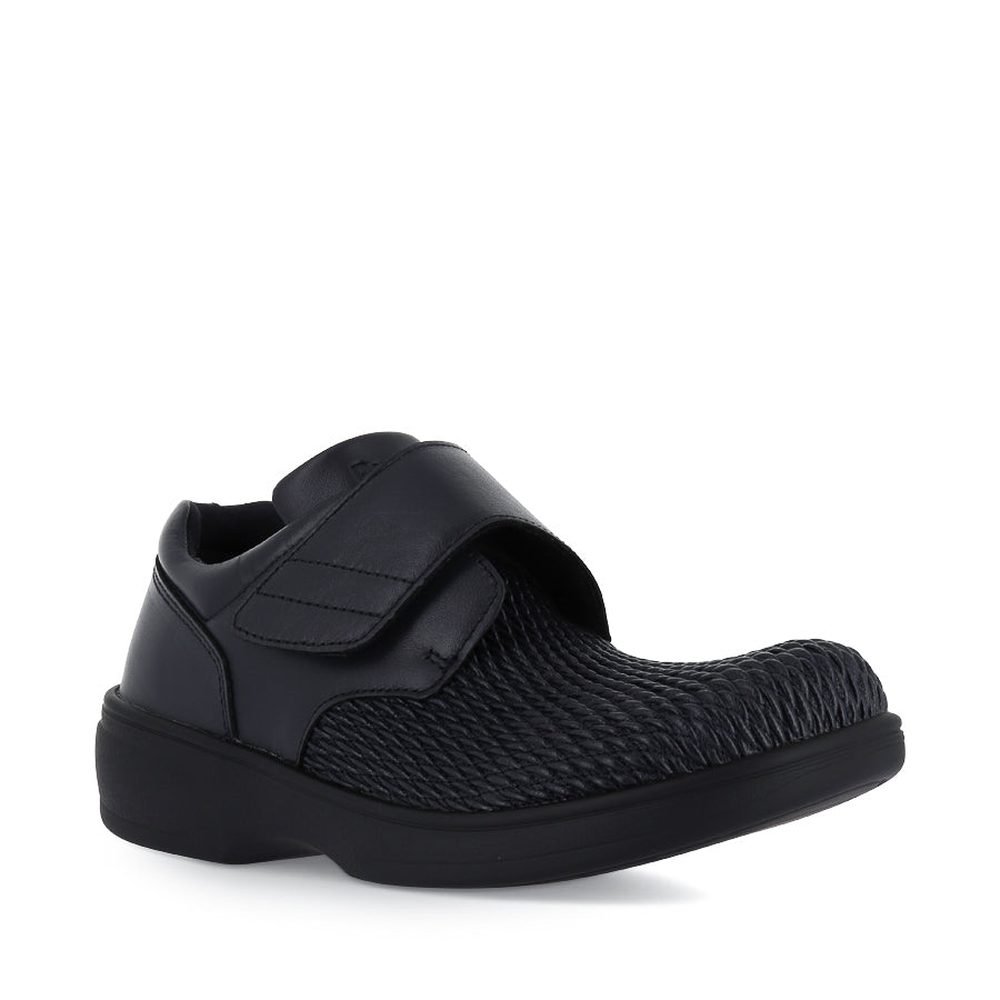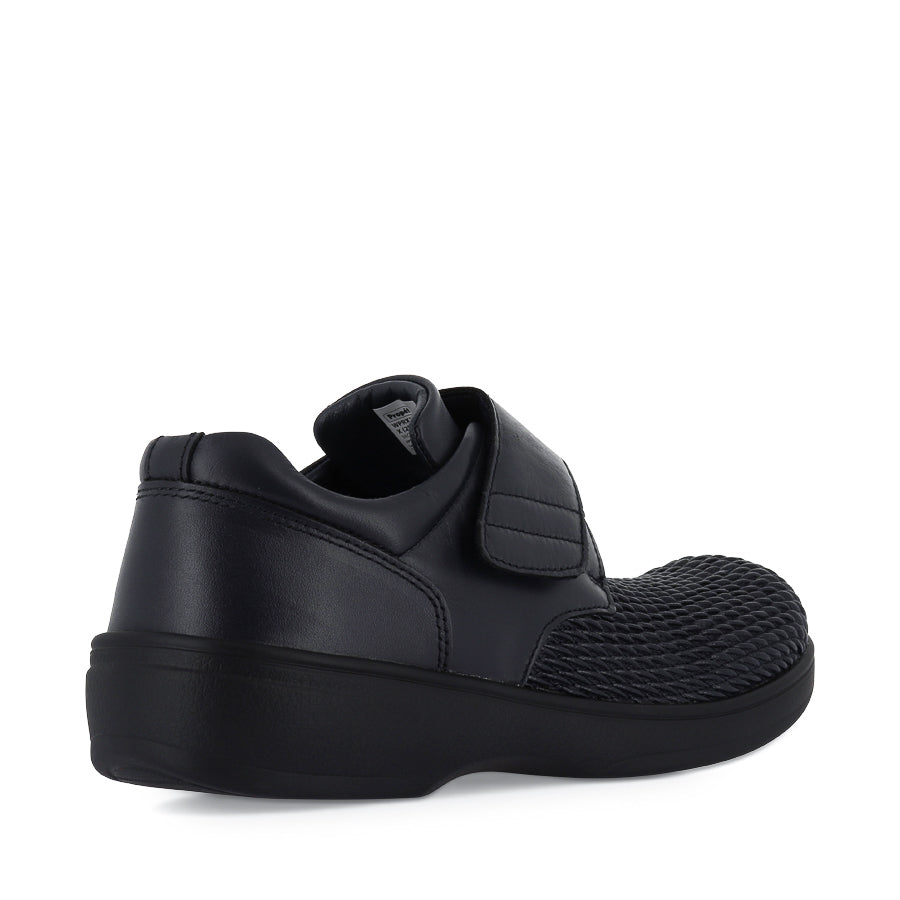 OLIVIA WPRX25 by PROPET presents a women's flat shoe crafted from supple full grain leather with flexible leatherette. Designed with versatility and comfort in mind, it features an oblique toebox shaped to accommodate various forefoot shapes, ensuring a comfortable fit. Equipped with an adjustable hook and loop strap, this shoe offers a personalised fit and easy on and off. The soft padded collar and tongue enhance overall comfort, while the supportive anti-slip heel counter provides stability with every step. Boasting double insoles allowing for additional width and depth, OLIVIA WPRX25 ensures optimal comfort and support. Finished with a shank-reinforced PU outsole, this shoe provides reliable traction on everyday surfaces.