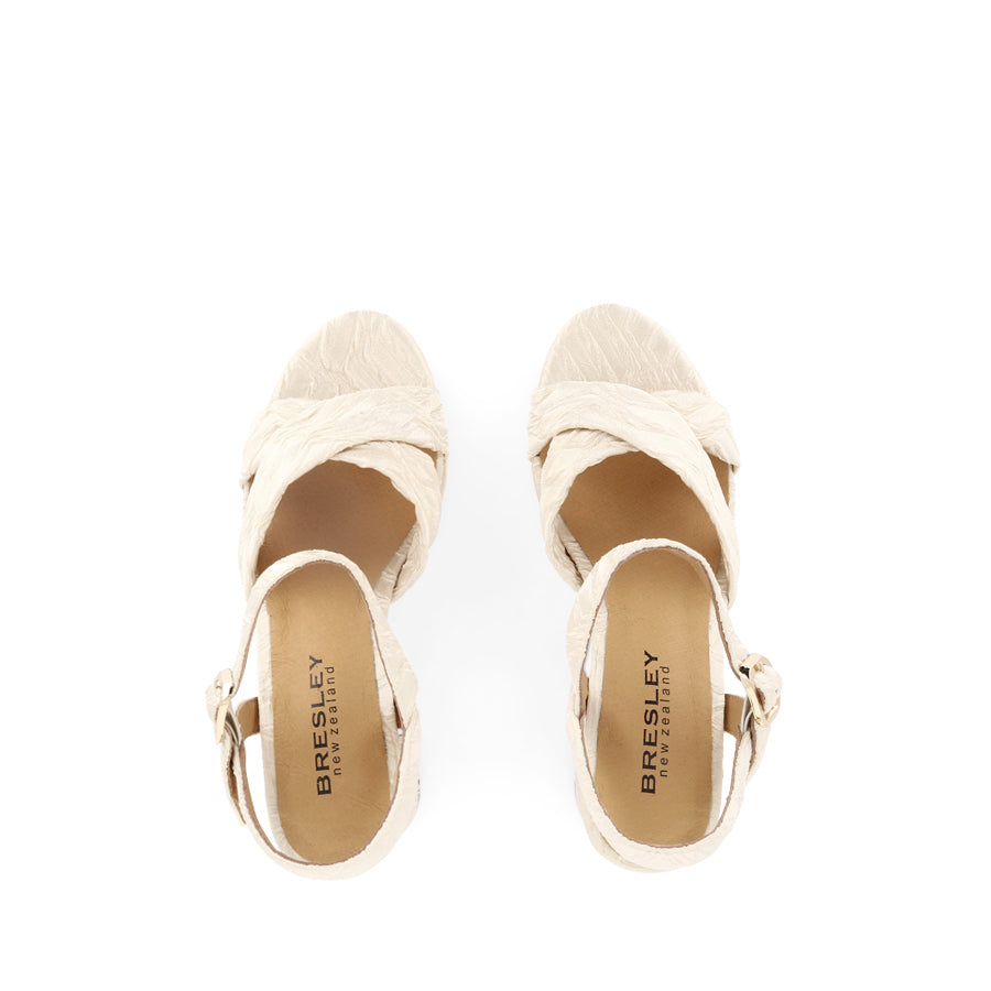 STARLIT by BRESLEY is a platform heel that makes a statement with every step. Featuring textured material, thick crossover straps, and a secure ankle strap with buckle fastening, this style pairs a platform sole with a high block heel for confident height. A bold silhouette that adds a touch of modern glamour to any outfit.